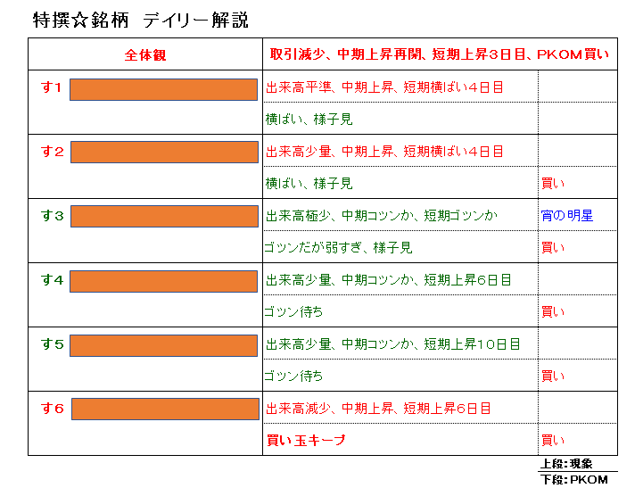 ↓各銘柄に関する状況判断、売買サイン、売買の適否を毎日公開しています。