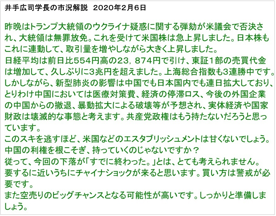生徒さん向けに、井手学長が毎日書いている「市況解説」をご紹介します。